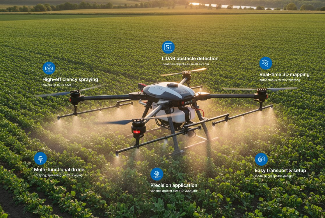 Drone EA-J100 – Smart farming made simple with LiDAR precision, sustainable spraying, and reliable crop protection for higher yields.